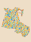 Cotton Frocks with hair bands and shorts