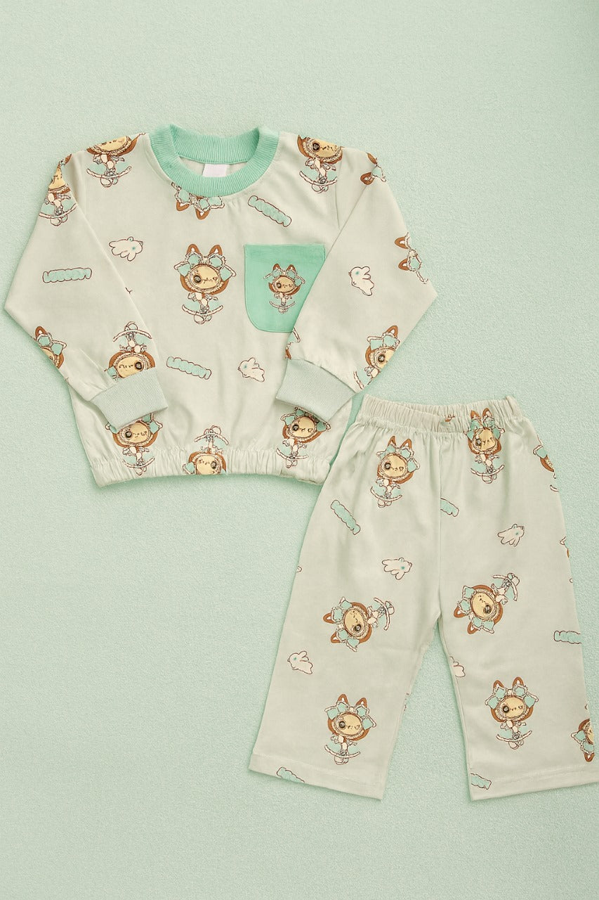 French Terry Girls Suit Lubabo - Sea Green Color