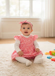 5 pc set Baby Girl Light Pink Floral Frock Set – Dress, Shorts & Hairband