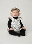 5 pc set White & Black Small Polka Dress Set with Bloomers