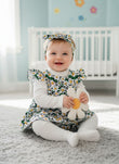 5 pc set Dark Green White Yellow Daisy Baby Dress Set with Bloomers